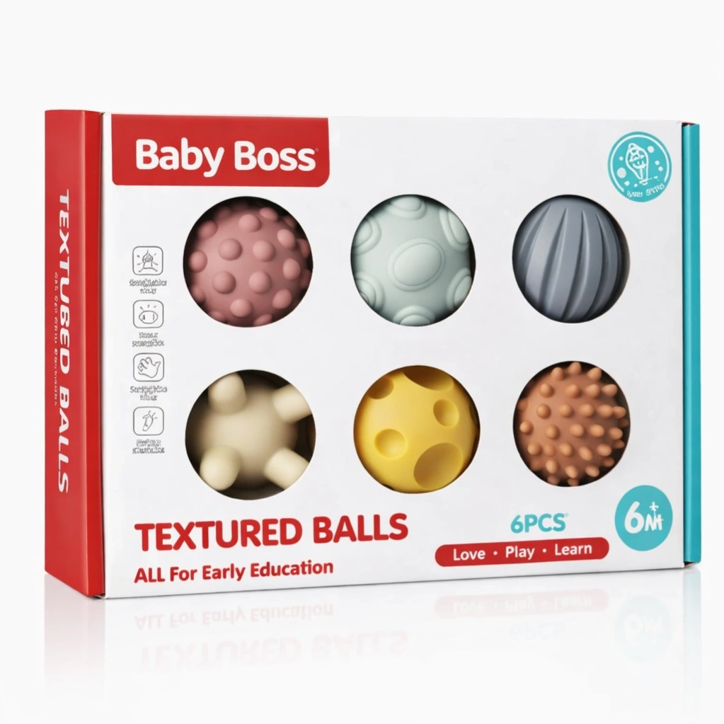 This 6-Piece Textured Ball Set is a sensory development toy designed for infants aged 6 months and older. These sets are widely used to encourage early education through tactile and visual exploration.