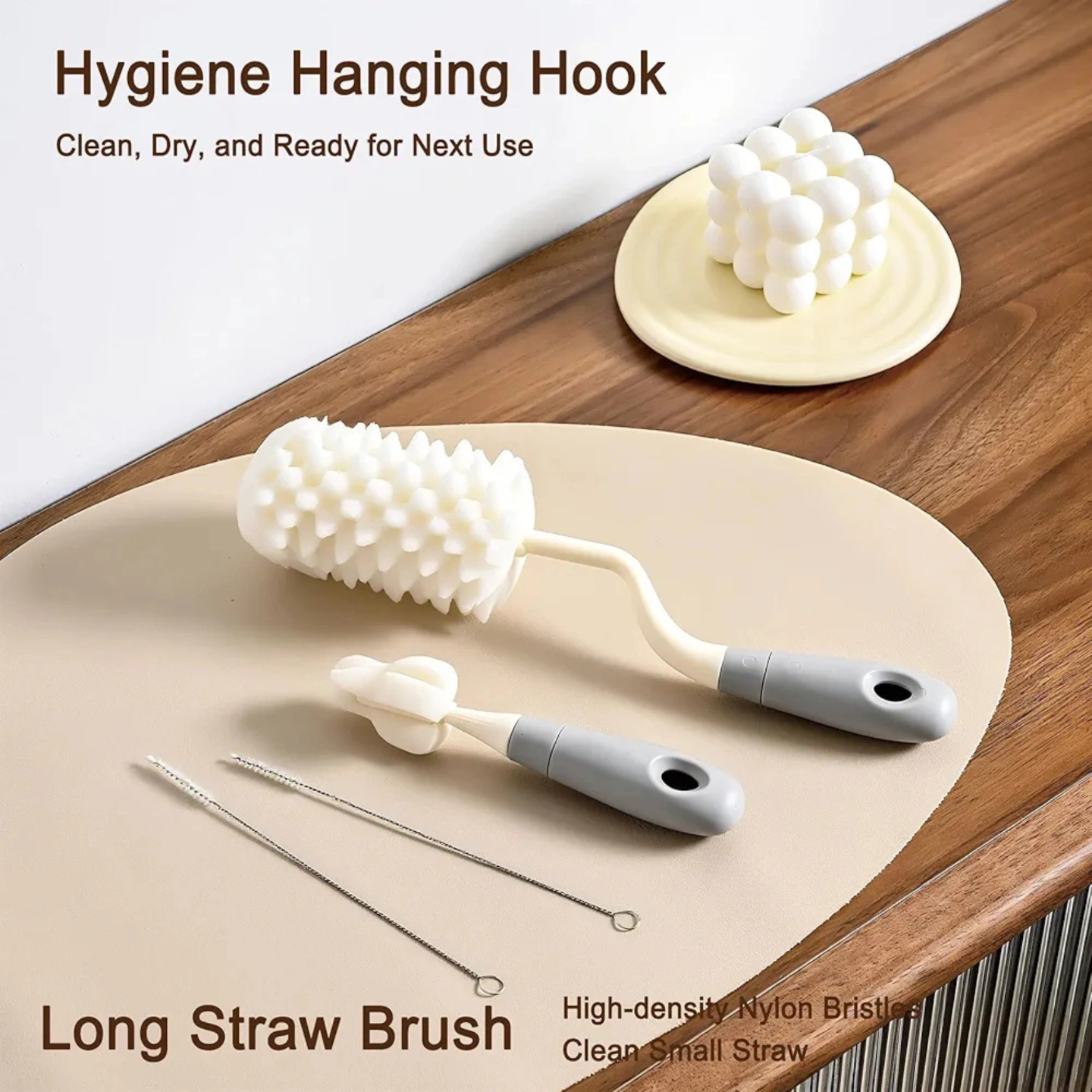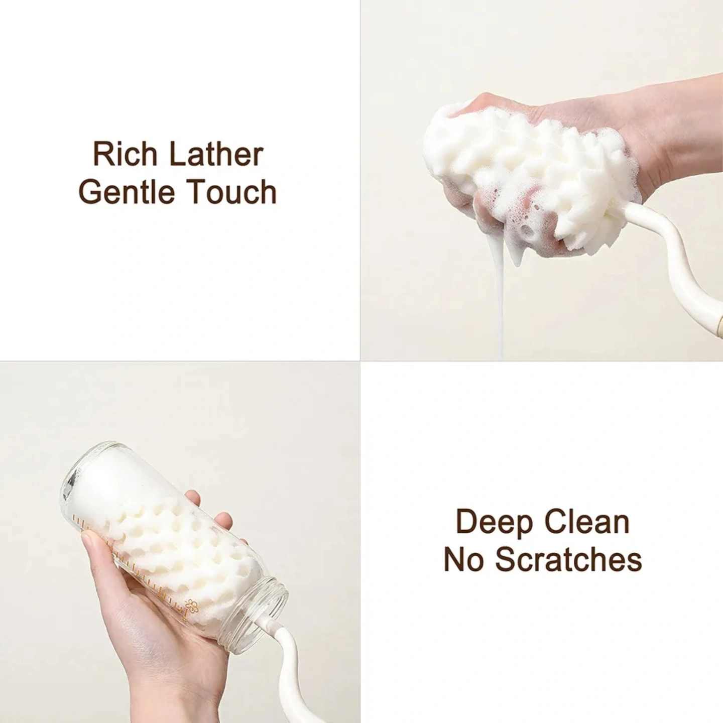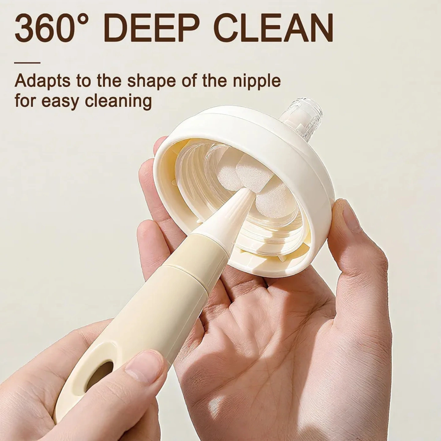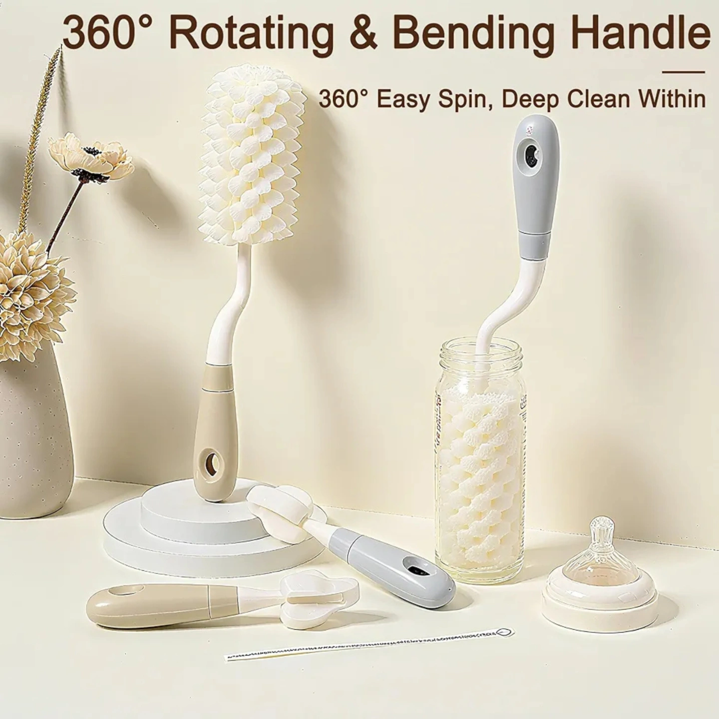 60° Rotating Handle: The main brush features a swivel handle for effortless, deep cleaning of bottle walls and bottoms.