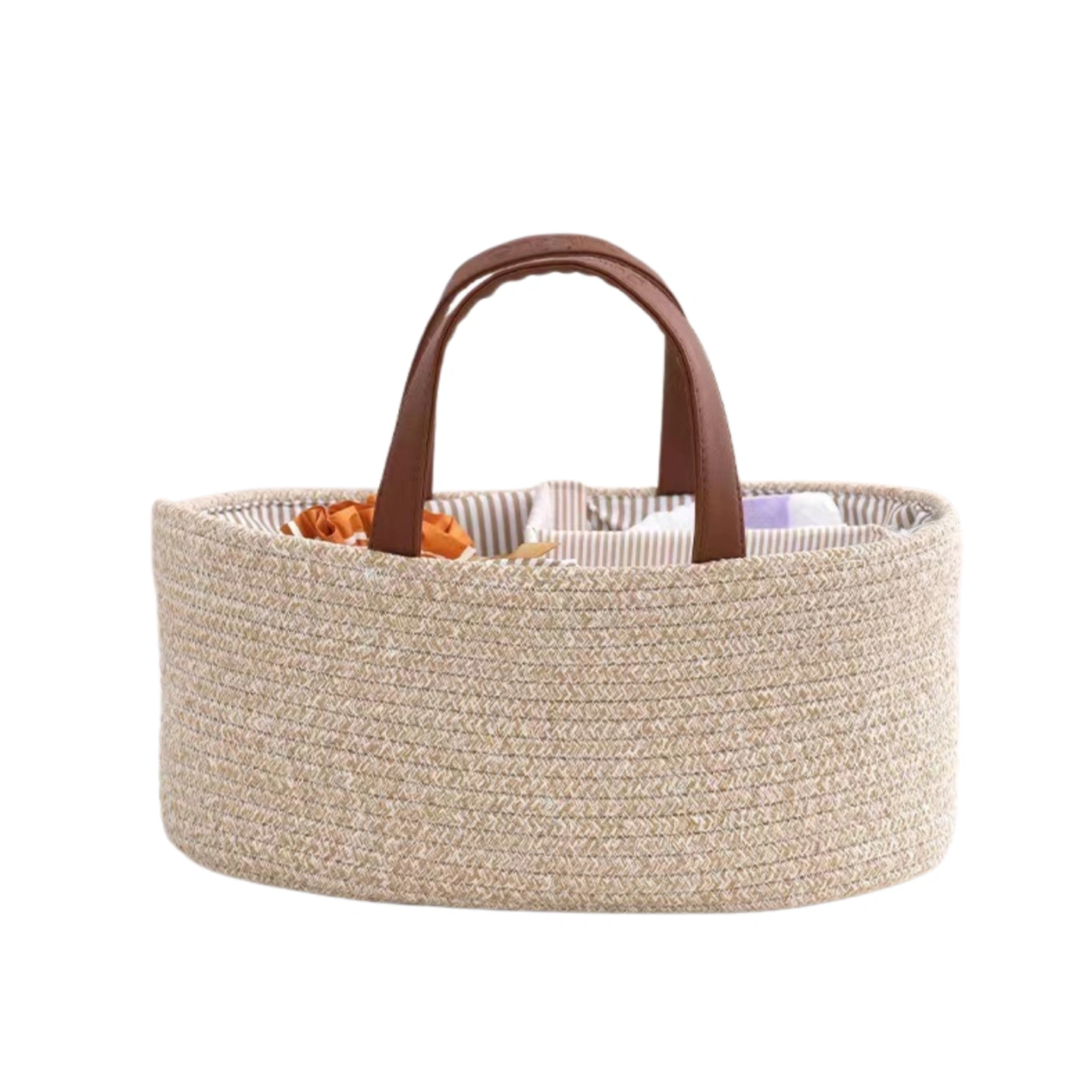 Our diaper organizer material is not only safe for your baby but also stand tear and wear. It’s made of 100% Cotton rope. that is gentle on skin.